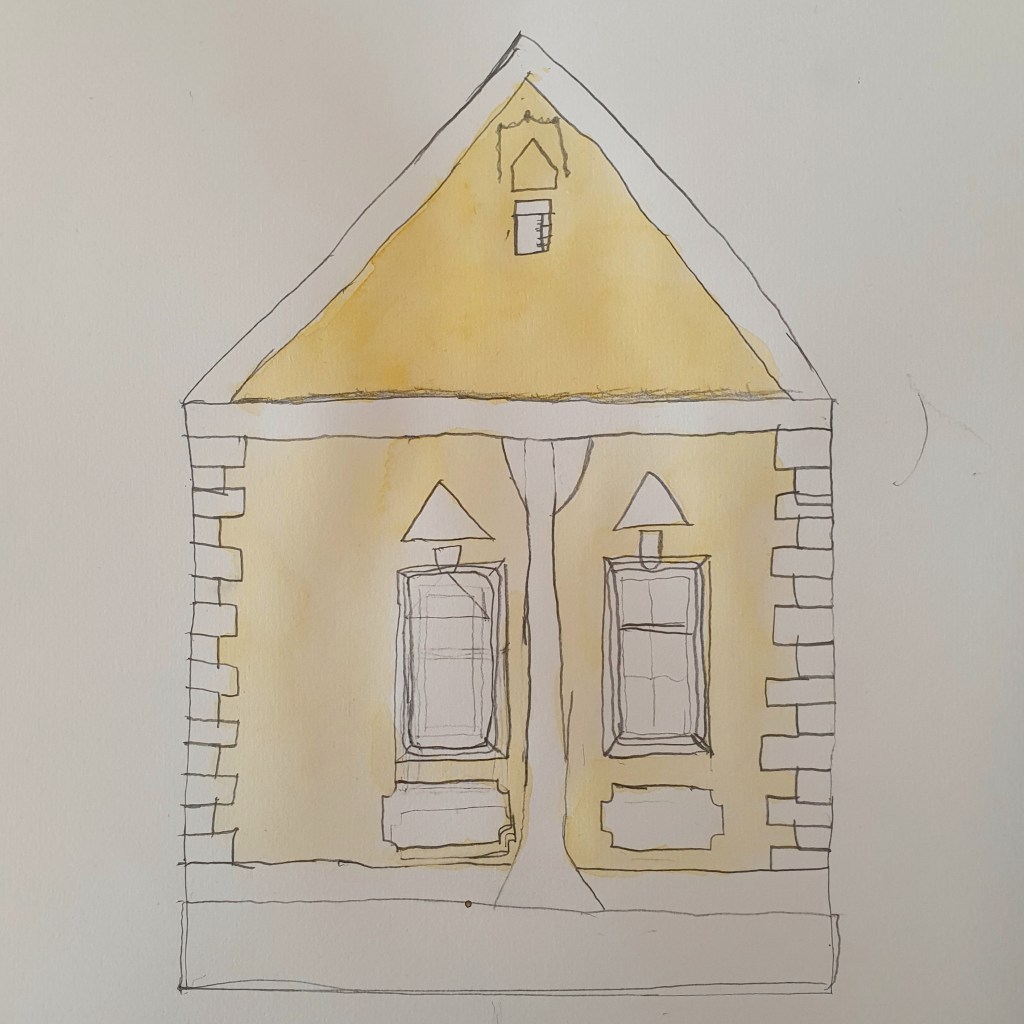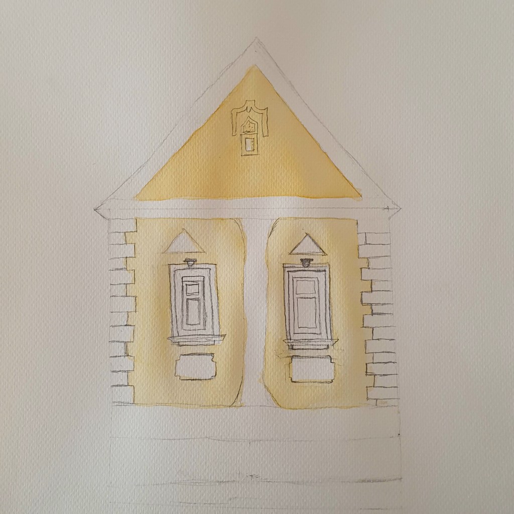 When entering Emery Walker’s House, it feels like going back in time, stepping into a family home of an era long gone. It comes with no surprise that one finds the house not only filled with Arts and Crafts Interior Design but also with mementos as a testimony to their friendship. Having been inside the house almost a year ago, it inspired me to do a slightly altered​ watercolour painting of the dining room.​ Among other things it features Morris & Co’s Willow wallpaper, handblocked and with a special bubble effect in the background which you potentially won’t find anywhere else. It also features a photography of William Morris hanging over the mantelpiece, as well as a painting of Philip Webb’s cottage in the countryside, William Morris’s 17th Century library chair from Kelmscott House, which in reality also has a May Mor​ris ​(daughter of William) tapistry cover​ lying on it, which was a gift from May to Emery after Williams death. The room also features a Morris & Co’s Bird pattern hanging​ and a ​brass dish ​(potentially 16th century​) that might have belonged to Philip Webb, like other items in the room.